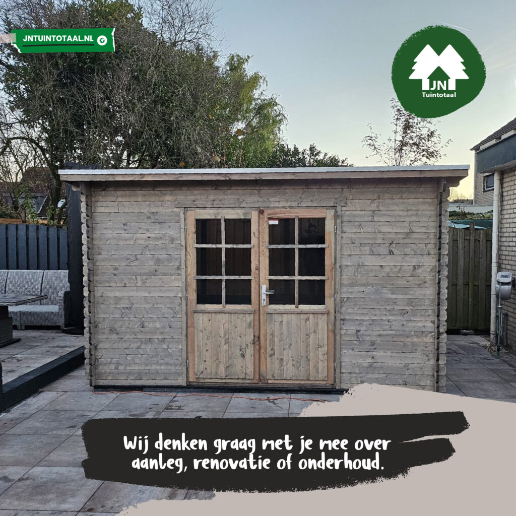 Bij JN Tuintotaal combineren we het plaatsen van een blokhut vaak met een compleet tuinplan. Dit kan onderdeel zijn van een volledige tuinaanleg of een tuinrenovatie. Bekijk hiervoor ook onze pagina over tuinaanleg: https://jntuintotaal.nl/tuinaanleg/